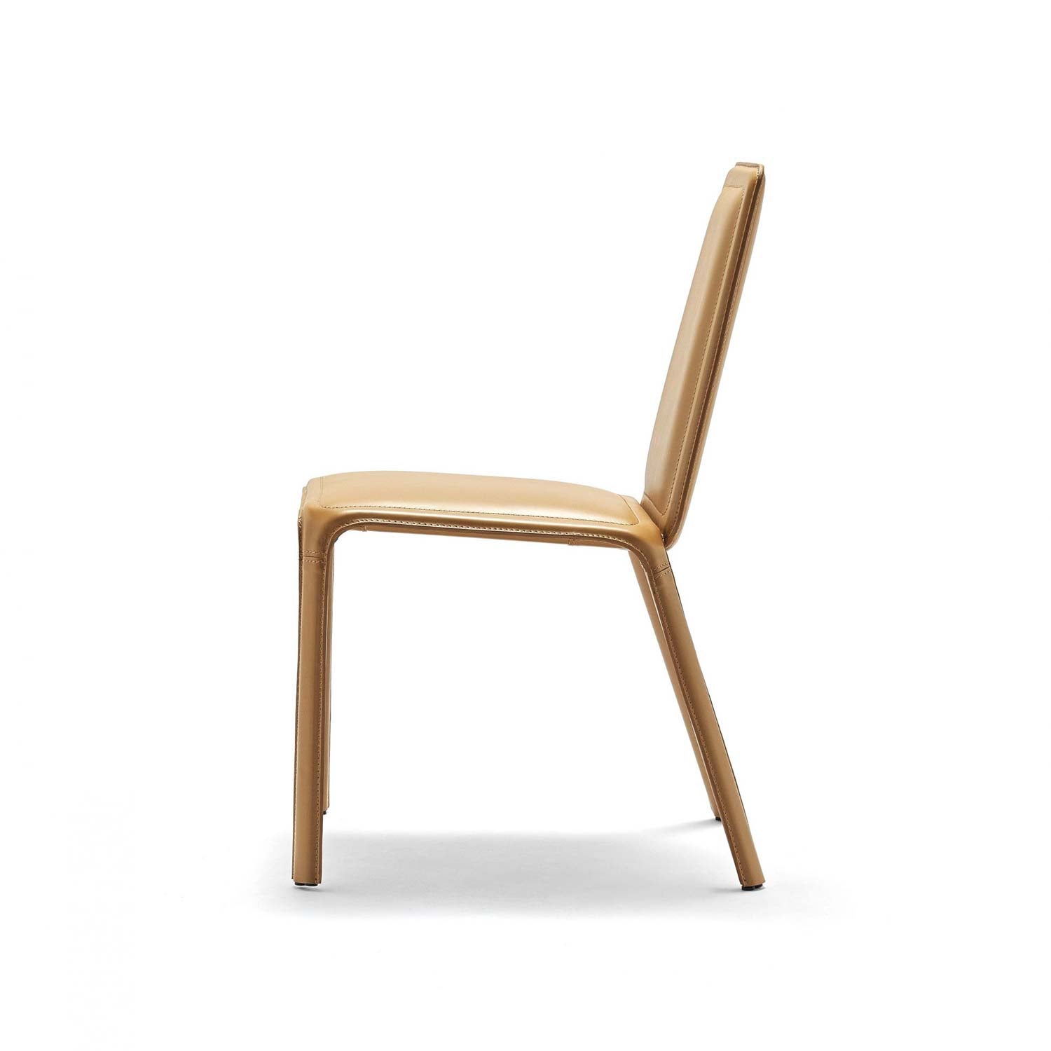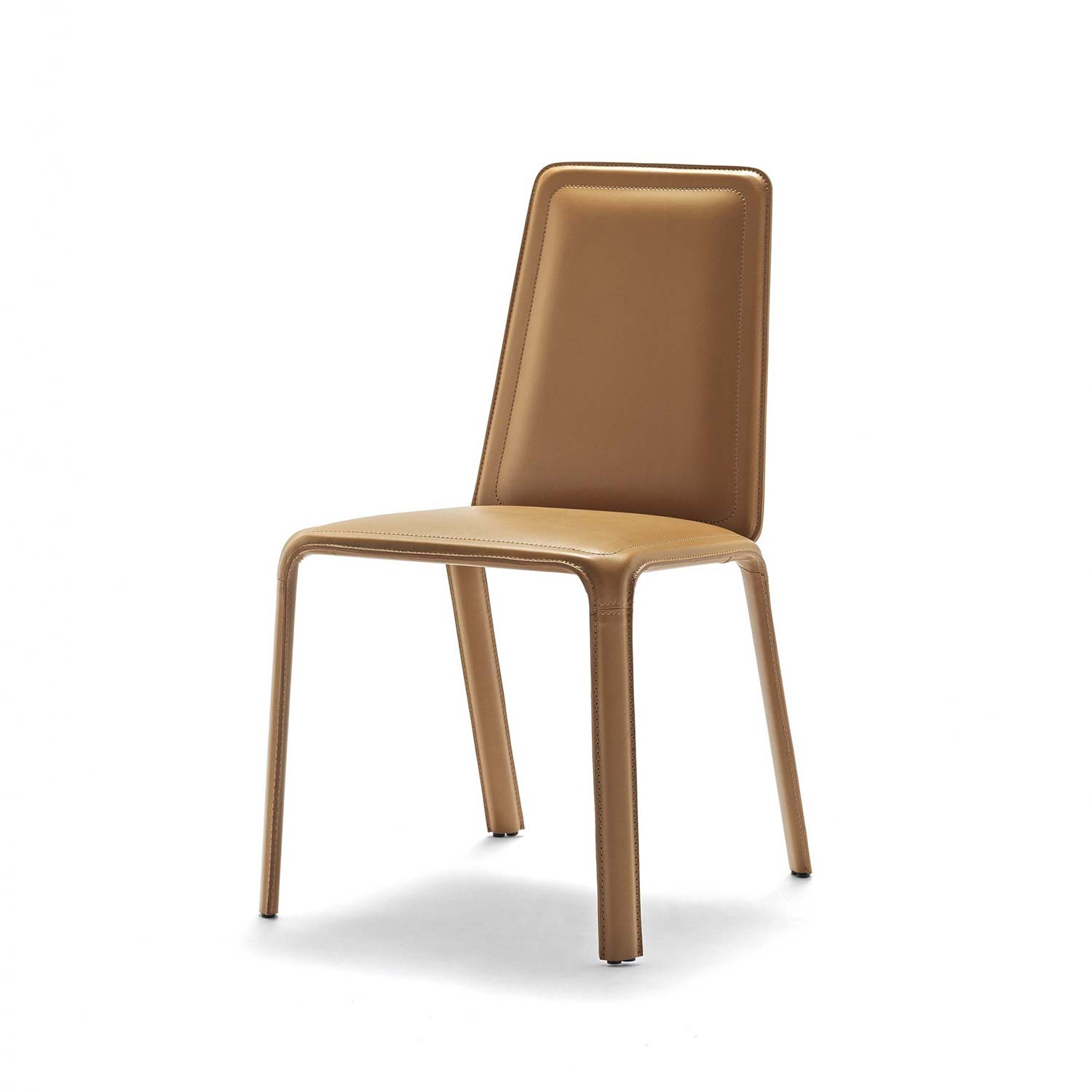 Ande Tall is a tall dining chair with a lightly padded seat and backrest completely covered with fasem full-grain leather. The steel legs are also fully covered with fasem full-grain leather. An even more comfortable and elegant design thanks to the height of the backrest that allows your body to better adapt to the seat. It speaks of fine craftsmanship and expertly selected materials.