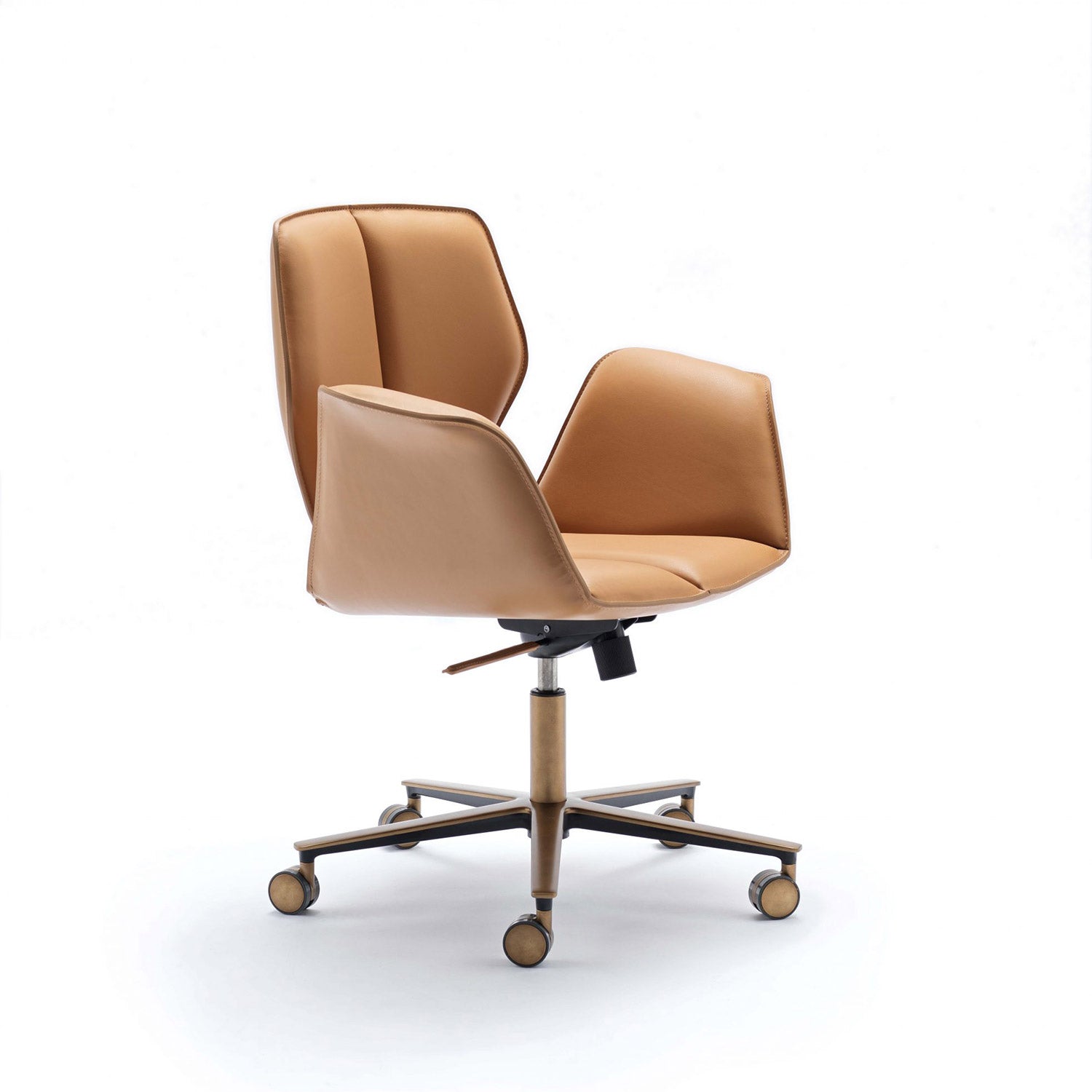 Fosca Big ABW is an executive armchair with a five-spoke aluminium base on castors. The swivel, height-adjustable steel shell comes in various fasem finishes and is upholstered with fasem premium leather on the inside and fasem full-grain leather on the outside. The height adjustment lever is covered with fasem full-grain leather.