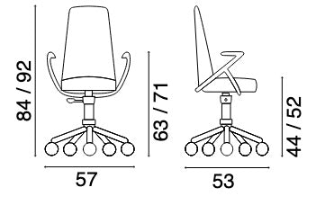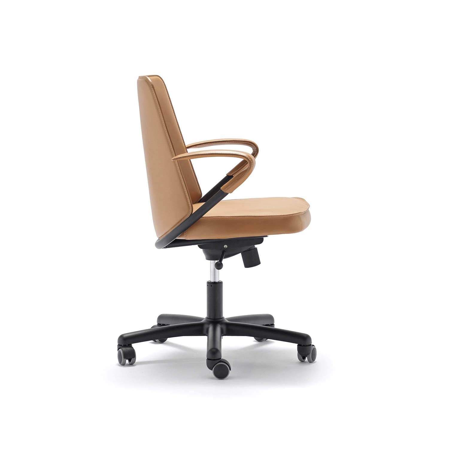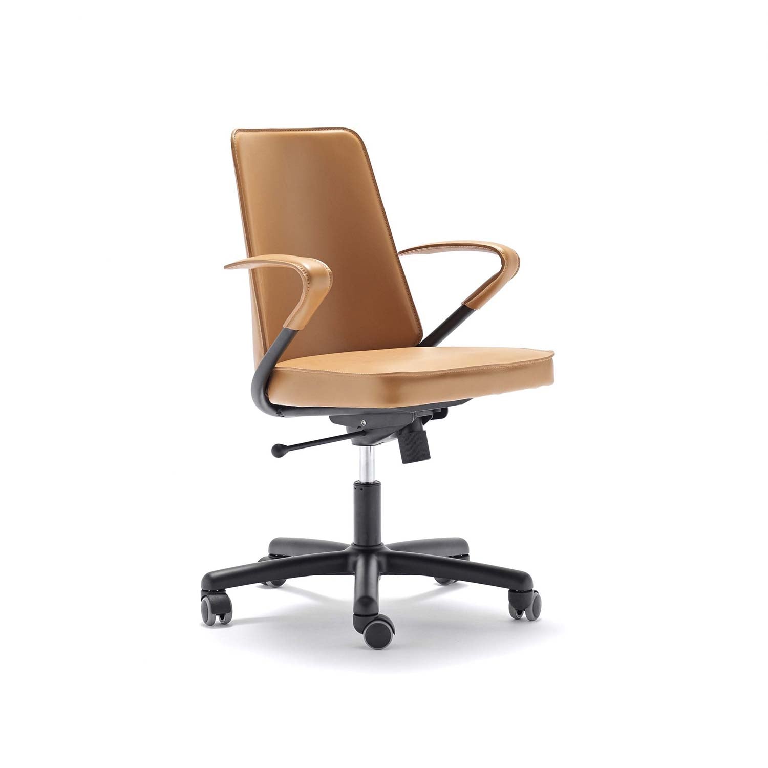 Luna ABW is an office swivel chair with an aluminium base on castors and adjustable height. The tilting steel shell in various fasem finishes is upholstered with fasem full-grain leather both internally and externally. A version entirely made of fasem premium leather is also available.