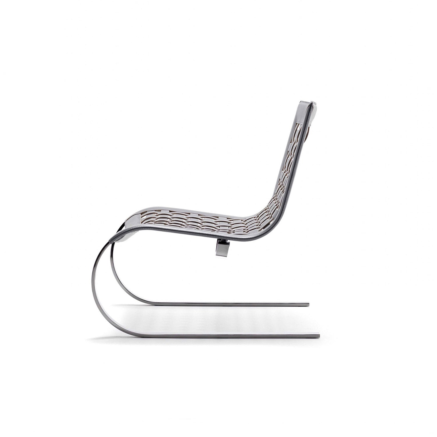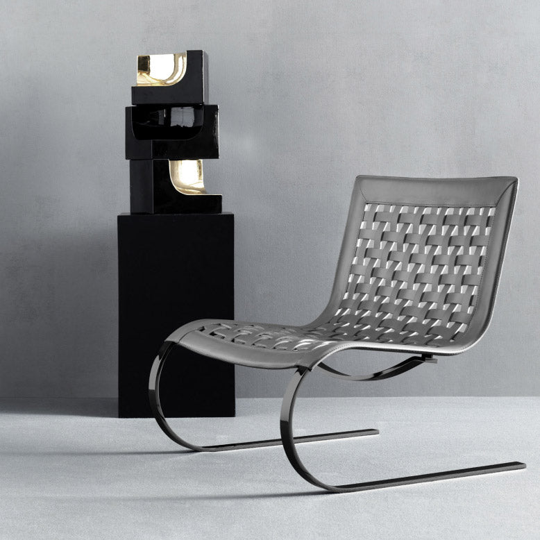 O’Mies is a lounge chair with a sinuous steel frame in various fasem finishes and a seat and backrest made of interwoven fasem full-grain leather. The visible cut of the weaves highlights the quality of the fasem full-grain leather and is expressed in a warm colour scheme. The manual craftsmanship together with the high-quality materials make this an immediately recognisable and impactful armchair.